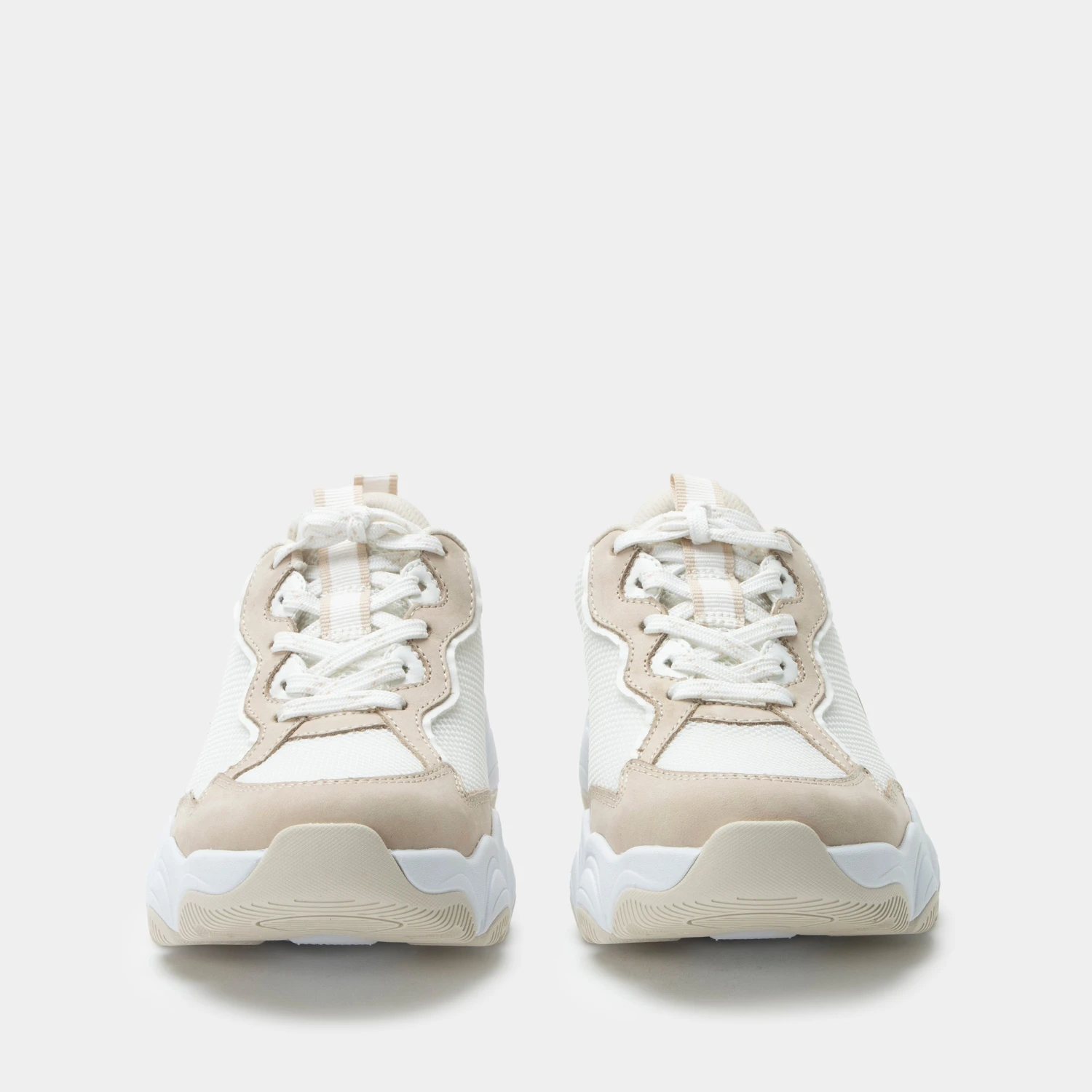 Featured in a neutral Ecru colorway on a mesh and vegan leather upper.