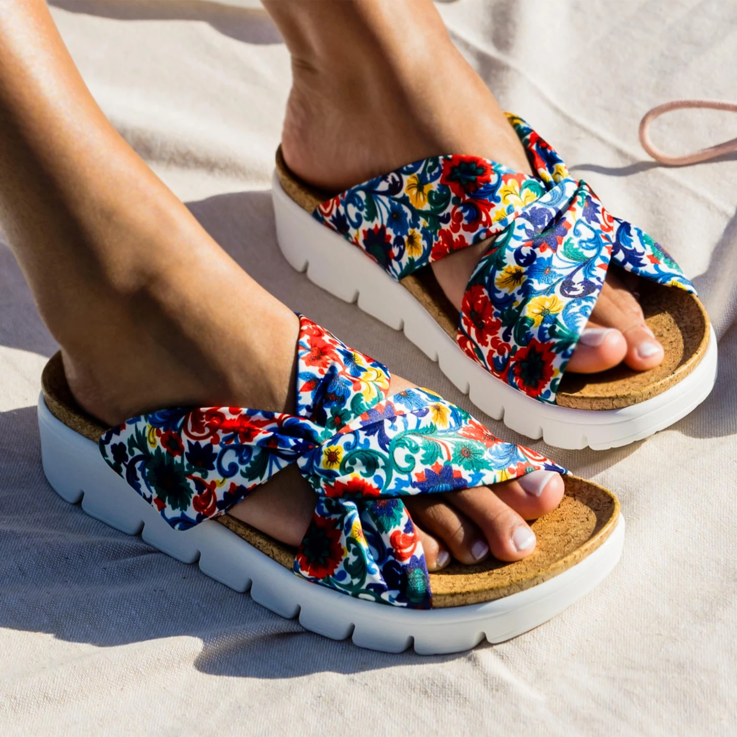 This knotted slide incorporates a hidden hook-and-loop closure for a personalized fit. The feminine upper is juxtaposed against a lightweight heritage outsole that supports a contoured footbed.