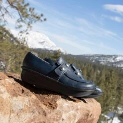 Slip-ons are today’s wardrobe warriors, like this leather style with elastic side gores and gentle padding at the instep and collar. The rounded toe and removable ergonomic footbed made of memory foam and cork enhance the comfort, while the slip-resistant career casual outsole offers all-day support.