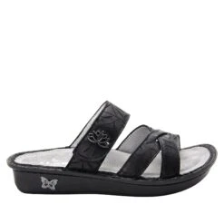 This multi-strap leather slide is super adjustable, incorporating a trio of hook-and-loop straps detailed with unique geometric ornaments. The Viera has a hand-stitched finishing on our Mini outsole. Made in leather upper and lining and underfoot is a patented removable footbed, which can also easily convert to medium or wide width.